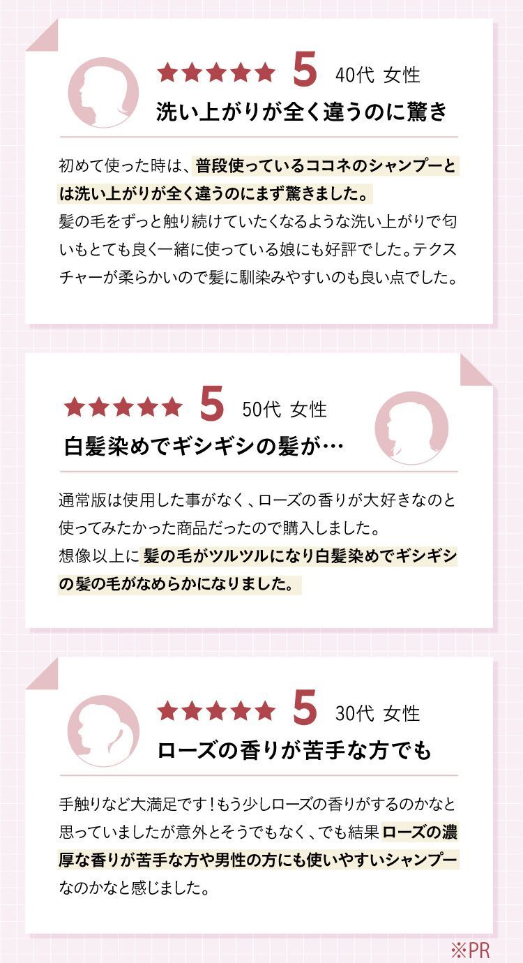 その実力の現れか、「使い続けたい!」「シャンプー迷子はもうしない!」なんて声であふれているのがcoconeシャンプー。